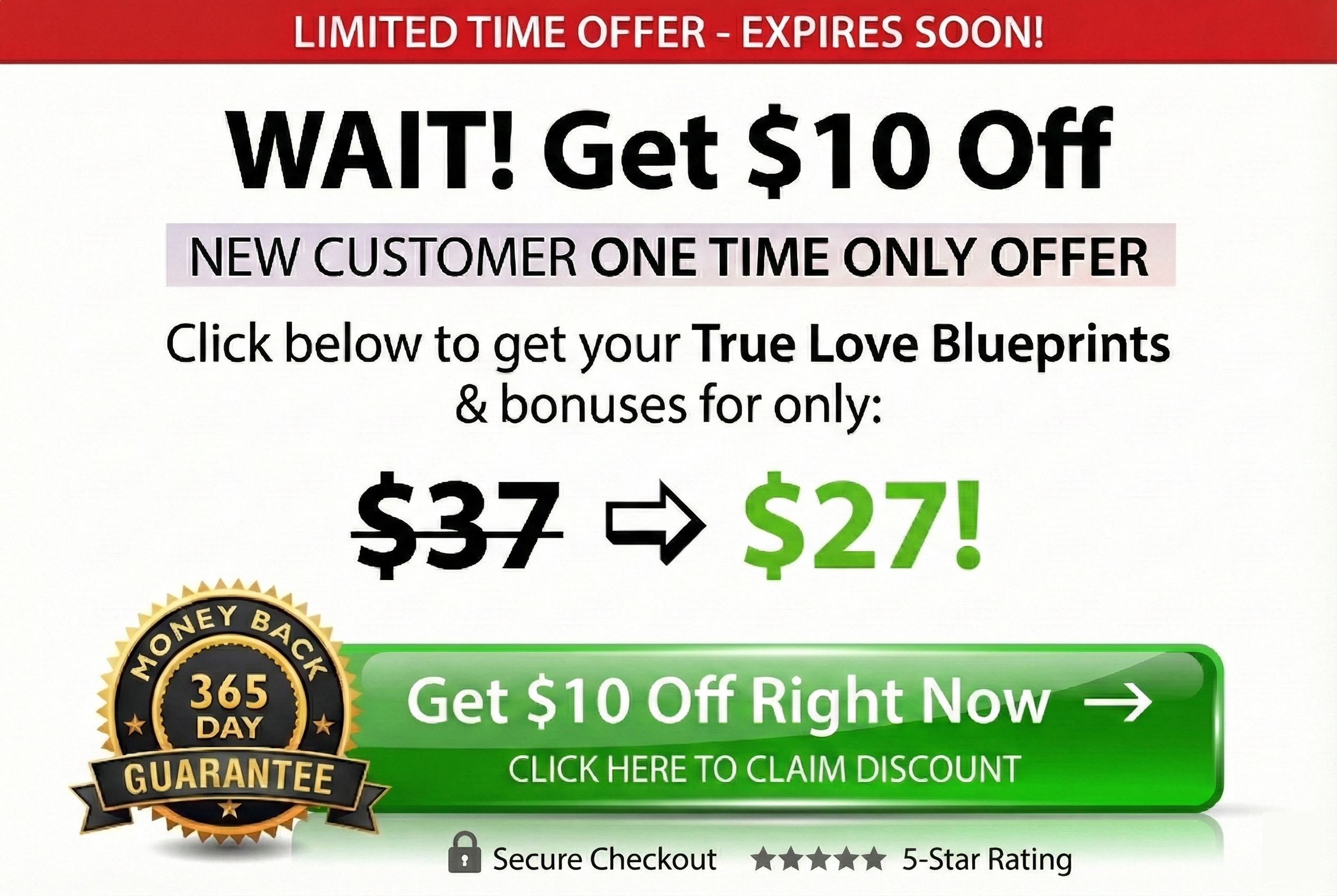 Claim your incredible discount on The True Love Blueprint now while this deal is still online, as I’m honestly not sure how long that will be.